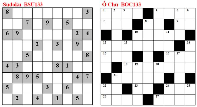 SUDOKU: Điền số (1..9) vào các ô trống sao cho các hàng, các cột và các khối 3×3 đều chứa tất cả các số từ 1 đến 9 (không trùng nhau).
