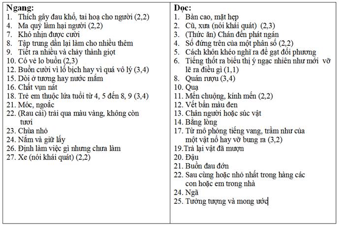 Ô CHỮ KHÔNG DẤU : Quy ước