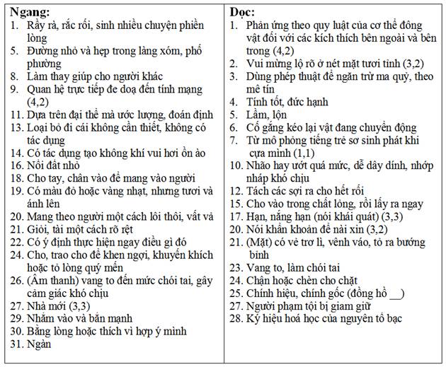 Ô CHỮ KHÔNG DẤU : Quy ước