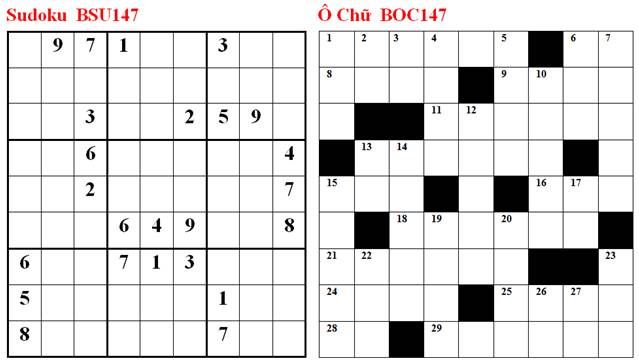 SUDOKU: Điền số (1..9) vào các ô trống sao cho các hàng, các cột và các khối 3×3 đều chứa tất cả các số từ 1 đến 9 (không trùng nhau).