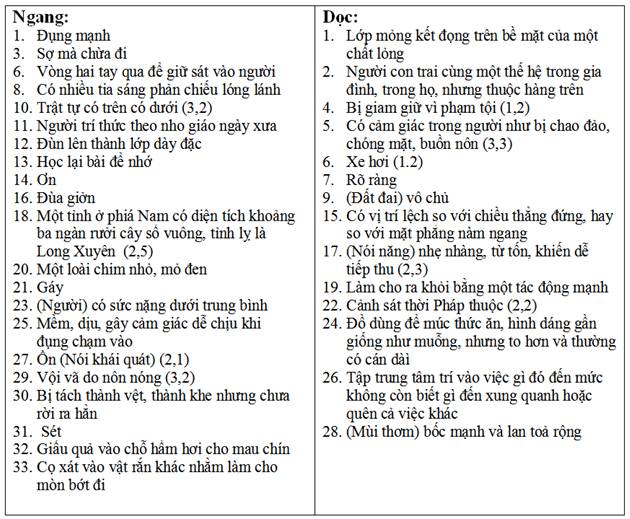 Ô CHỮ KHÔNG DẤU : Quy ước