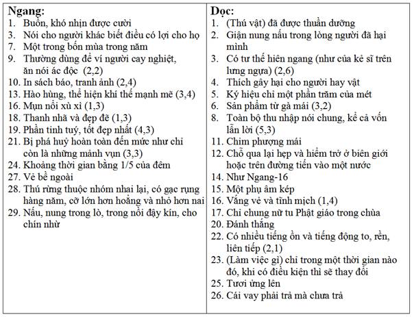 Ô CHỮ KHÔNG DẤU : Quy ước
