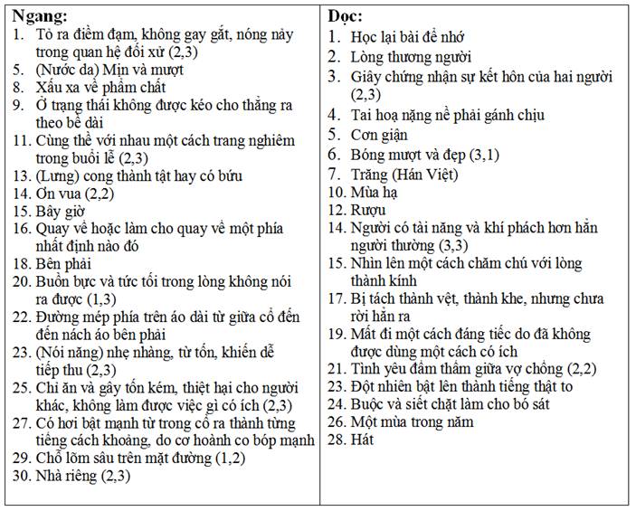 Ô CHỮ KHÔNG DẤU : Quy ước