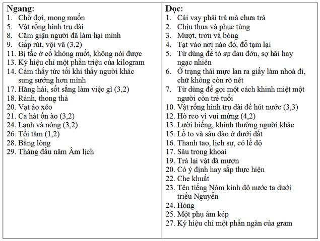 Ô CHỮ KHÔNG DẤU : Quy ước