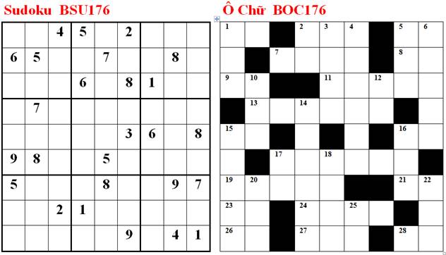 SUDOKU: Điền số (1..9) vào các ô trống sao cho các hàng, các cột và các khối 3×3 đều chứa tất cả các số từ 1 đến 9 (không trùng nhau).