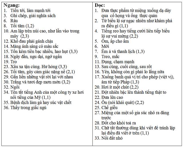 Ô CHỮ KHÔNG DẤU : Quy ước