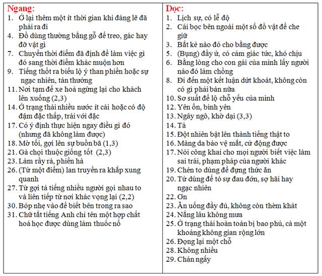 Ô CHỮ KHÔNG DẤU : Quy ước