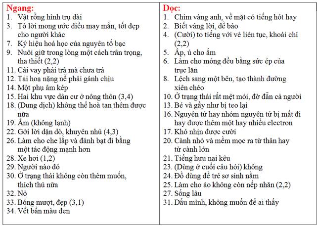 Ô CHỮ KHÔNG DẤU : Quy ước
