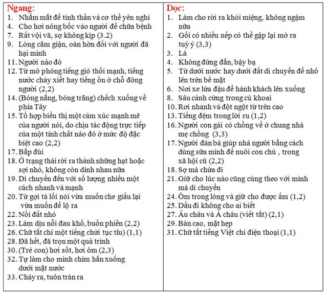 Ô CHỮ KHÔNG DẤU : Quy ước