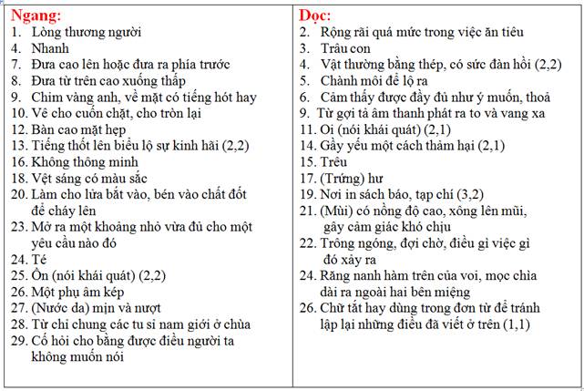 Ô CHỮ KHÔNG DẤU : Quy ước