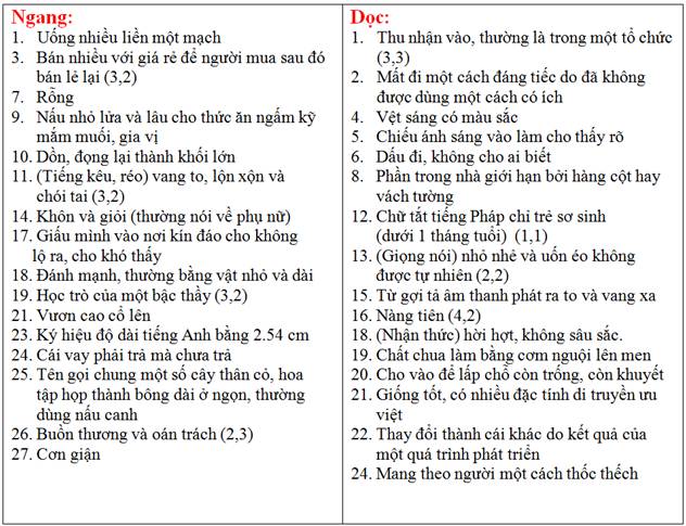 Ô CHỮ KHÔNG DẤU : Quy ước