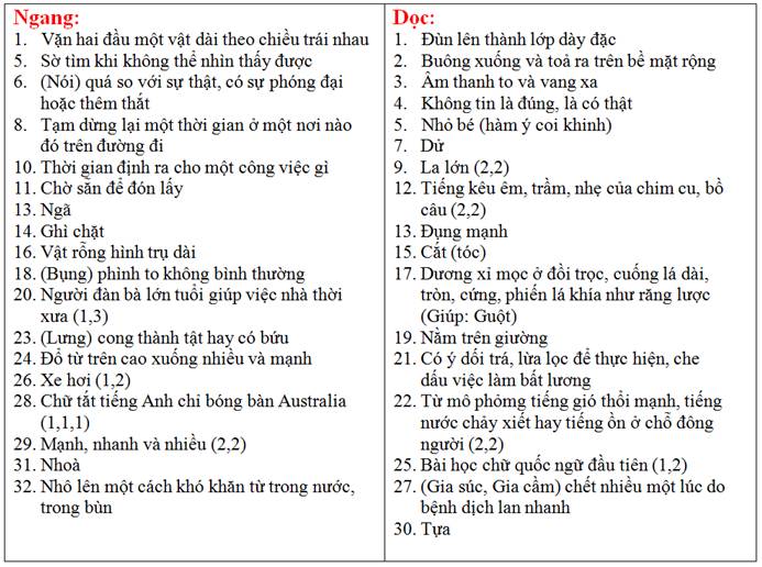 Ô CHỮ KHÔNG DẤU : Quy ước