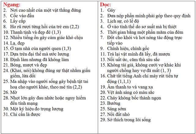 Ô CHỮ KHÔNG DẤU : Quy ước