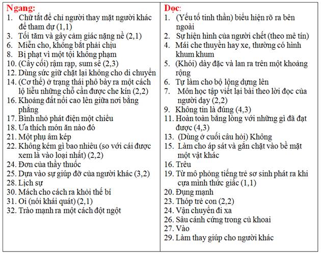 Ô CHỮ KHÔNG DẤU : Quy ước