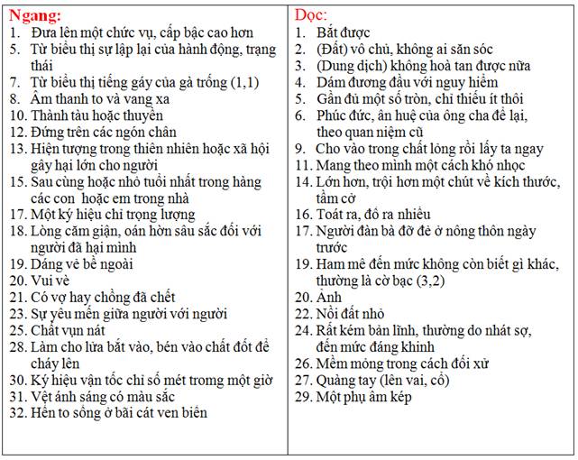 Ô CHỮ KHÔNG DẤU : Quy ước