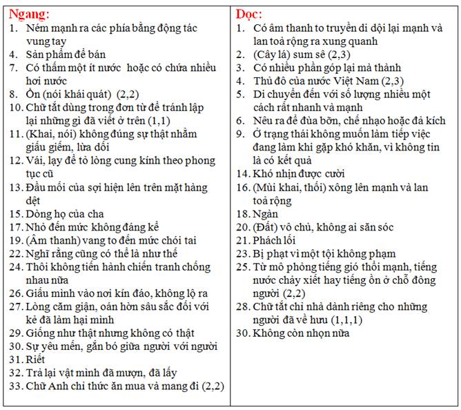 Ô CHỮ KHÔNG DẤU : Quy ước