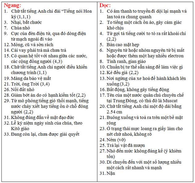 Ô CHỮ KHÔNG DẤU : Quy ước