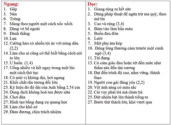 Ô CHỮ KHÔNG DẤU : Quy ước