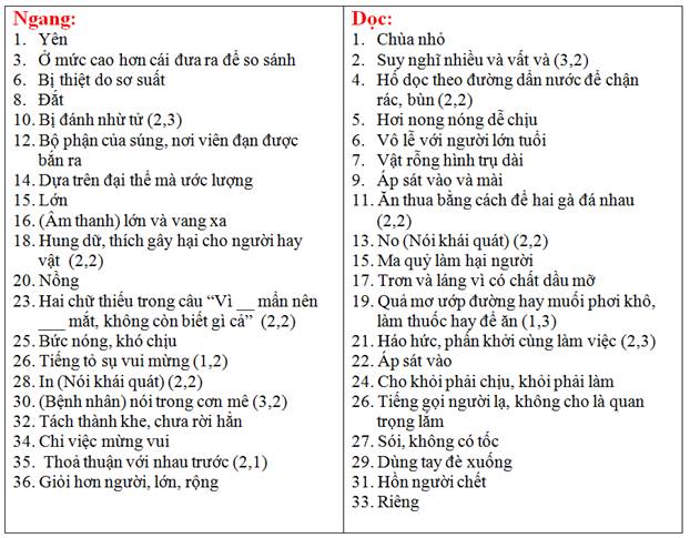 Ô CHỮ KHÔNG DẤU : Quy ước