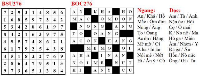 SUDOKU: Điền số (1..9) vào các ô trống sao cho các hàng, các cột và các khối 3×3 đều chứa tất cả các số từ 1 đến 9 (không trùng nhau).