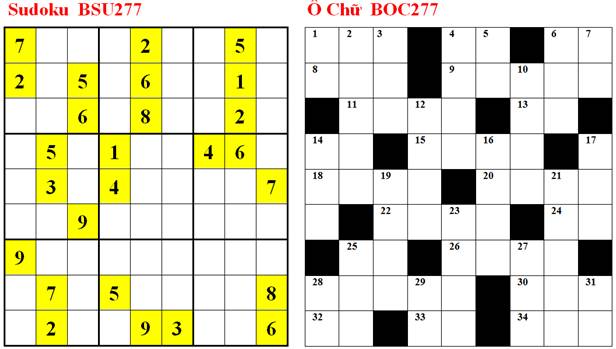 Ô CHỮ KHÔNG DẤU : Quy ước