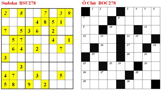 SUDOKU: Điền số (1..9) vào các ô trống sao cho các hàng, các cột và các khối 3×3 đều chứa tất cả các số từ 1 đến 9 (không trùng nhau).