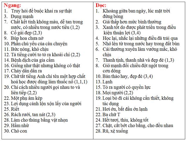 Ô CHỮ KHÔNG DẤU : Quy ước