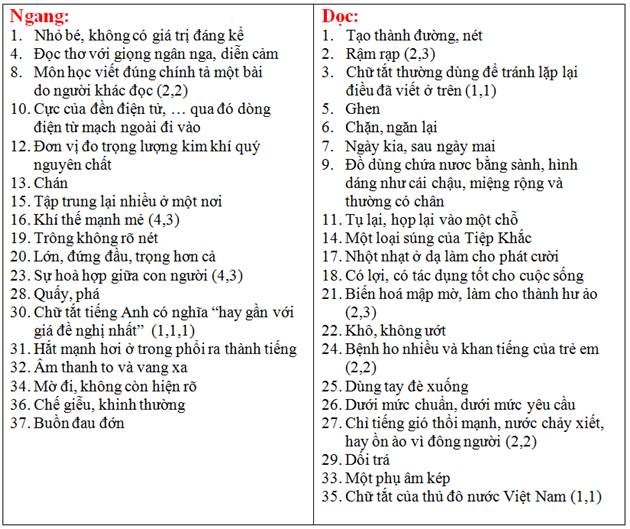 Ô CHỮ KHÔNG DẤU : Quy ước