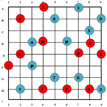 Chess Pieces: 2 Powers, Digits (1 … 9), Blue goes first.