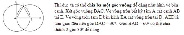 Thật ra, không phải tất cả mọi góc đều không thể chia 3 đuợc bằng phép vẽ chỉ dùng compas và thước thẳng.