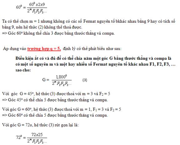 Ta có thể chọn m = 0 nhưng không có các số Fermat nguyên tố khác nhau bằng 25 hay có tích số bằng 25, nên hệ thức (3) không thể thoả được.