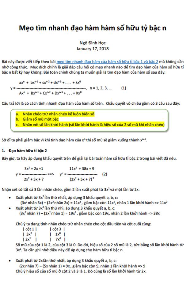 KQNC29 – Mẹo tìm đạo hàm hàm số hữu tỷ bậc n
