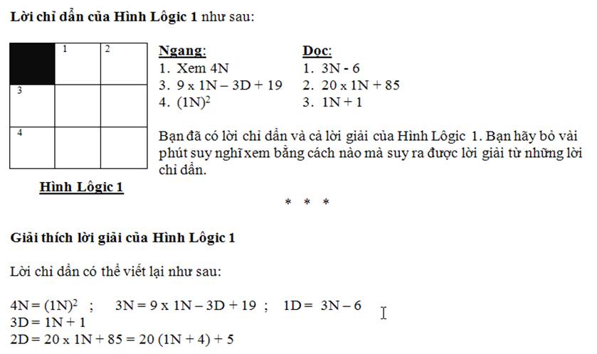 Trong một Hình Lôgic, các số có thể suy ra từ các lời chỉ dẩn bằng nhiều cách, thí dụ như sau: