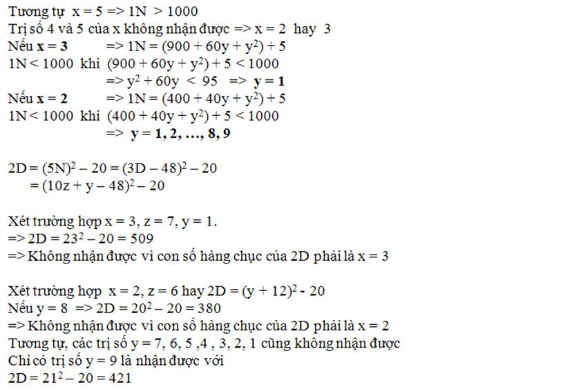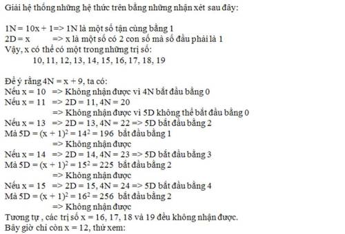 Vì 3D = 1N + 1 nên số tận cùng của 3D phải là 6