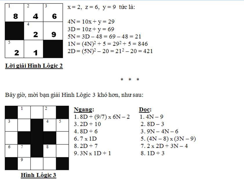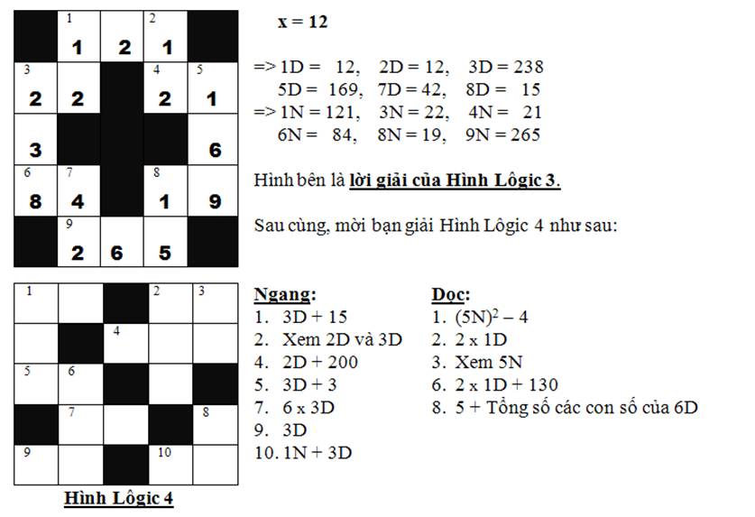 Tóm lại, lời giải của Hình Lôgic 4 nhận được với trị số x = 3D = 12.