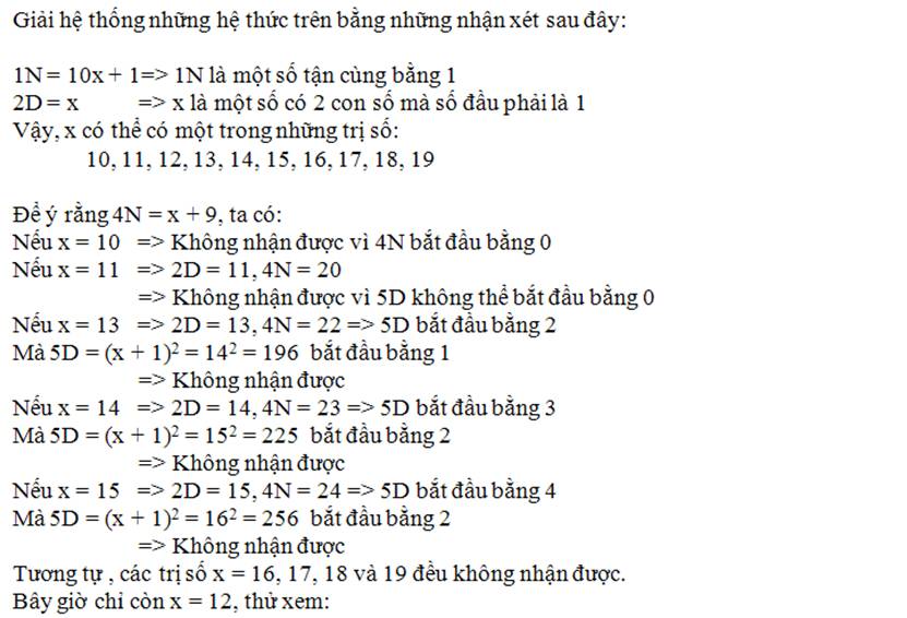 Còn lại trường hợp x = 12, 5N = 15