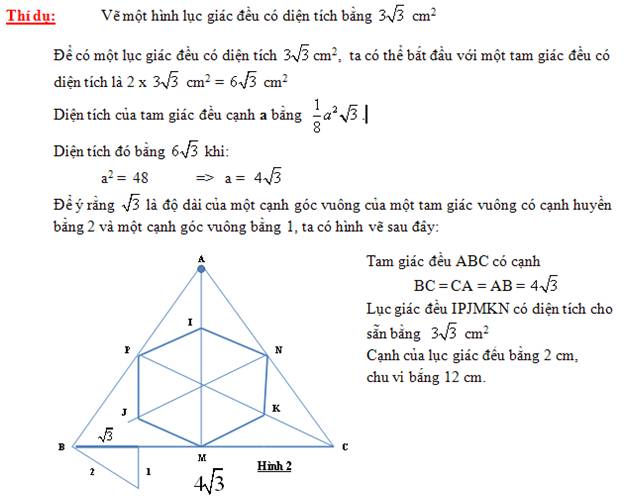 Để có một lục giác đều có diện tích cho sẵn S, ta có thể bắt đầu từ một tam giác đều có diện tích là 2S.