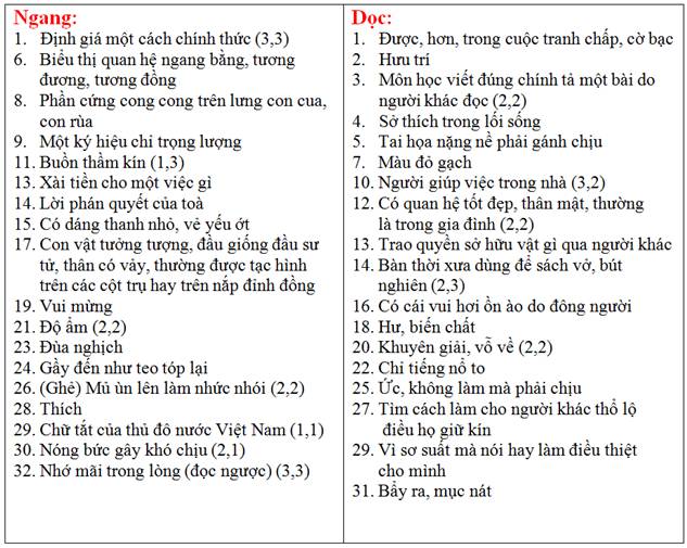 Ô Chữ Việt Nam có dấu OCD271 và NN-74