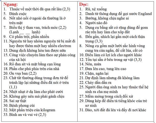 Lời giải Ô Chữ OCD271 và Ô Chữ NN-74
