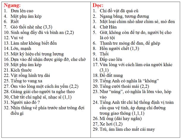 Ô Chữ Việt Nam có dấu OCD276 và NN-79