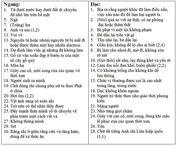 Ô chữ Việt Nam có dấu OCD118
