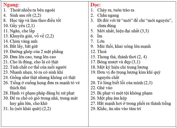 Hướng dẩn Ô chữ NN-31