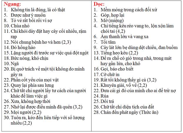 Ô Chữ Việt Nam có dấu OCD258 và NN-61