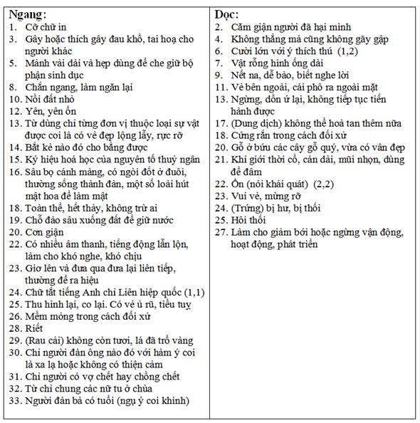 Ô chữ Việt Nam có dấu OCD092