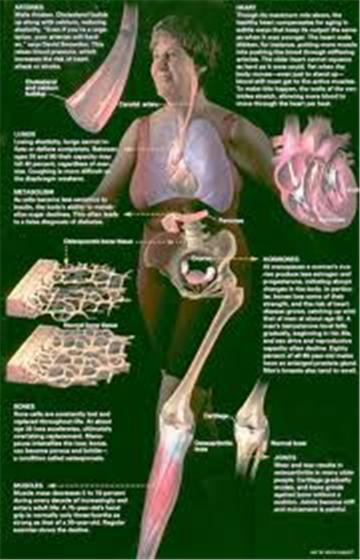 Thông thường bắp thịt khi bị lão hoá thì được tái tạo ngay, nhưng đến tuổi 30 thì tái tạo it hơn là lão hóa. Ðến tuổi 40, mỗi năm bắp thịt bị sút giảm từ 0.5 đến 2 %. Vì thế người già khó giữ thăng bằng, trở thành chậm chạp, dễ bị ngã và gẫy xương.