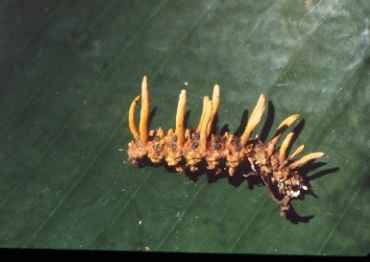 Loài nấm này bắt đầu nảy mầm trong các cơ thể sống của một số loài ấu trùng, tiêu diệt các loài ấu trùng này làm thức ăn của nấm, khiến cho các ấu trùng trở thành một xác ướp khô tự nhiên.
