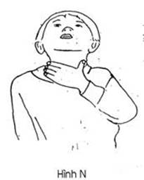 Cách xoa là dùng bàn tay trái bóp nhẹ lên phía trước cổ, đặt cổ giữa gọng kềm của ngón tay cái và 4 ngón tay khác còn lại; ngón cái bên trái, còn ngón trỏ và 3 ngón kia thì ở bên mặt (Hình N). Xoa bóp bằng cách kéo từ trên xuống dưới từ 21 đến 36 lần động tác. Sau đó dùng trọn lòng bàn tay mặt ôm sau cổ lên chí ót. Xoa bóp cũng bằng cách kéo từ trên xuống dưới từ 21 đến 36 lần (Hình O).