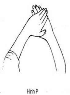 Trước hết dùng hai lòng bàn tay ma sát lại với nhau đến khi thấy nóng. Rồi dùng lòng bàn tay phải xoa lên lưng bàn tay trái từ 21 đến 36 lần. Sau đó đổi thế, dùng bàn tay trái xoa lên lưng bàn tay phải cũng theo cử động lên xuống, và cũng từ 21 đến 36 lần (Hình P).