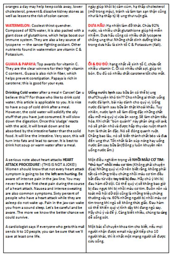 Uống 5 ly nước mỗi ngày giảm 45 % nguy cơ ung thư ruột và có thể giảm nguy cơ ung thư vú từ 79% và 50% ung thư bàng quang.