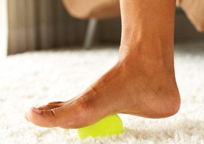 Dùng chân lăn bóng tennis là một cách mát-xa bàn chân hết sức nhẹ nhàng và đơn giản. Chỉ cần dành từ 1-2 phút lăn chân trên bóng tennis, bóng đánh golf hoặc các lon đựng đồ ăn cũng giúp bàn chân cảm thấy vô cùng thoải mái. Nếu chân bị đau nhói, nên lăn chân trên chai nước đá.